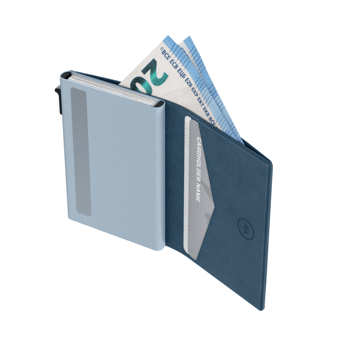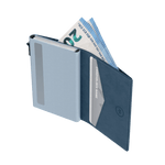 Terwijl de wallet zeer slank is, heeft hij een opvallend grote opbergcapaciteit. In de aluminium kaarthouder passen 6 pasjes. Daarnaast gaan er nog eens 2 extra passen, briefgeld en bonnetjes aan de binnenzijde van de wallet.